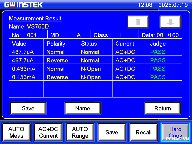 Để đánh giá chính xác thông số dòng rò, bài kiểm tra được thực hiện bằng thiết bị đo chuyên dụng GW Instek GLC-9000, đảm bảo kết quả đo đạt độ tin cậy và tuân thủ đúng chuẩn an toàn.