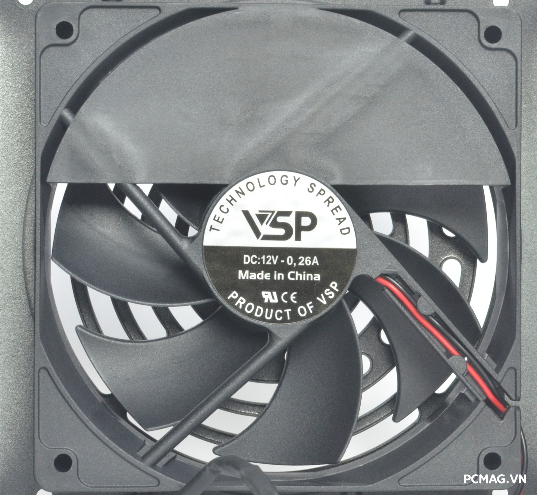 MegaMax VS750D sử dụng quạt làm mát VSP 12V 0.26A, Rifle bearing, có tốc độ tối đa khoảng 2100RPM